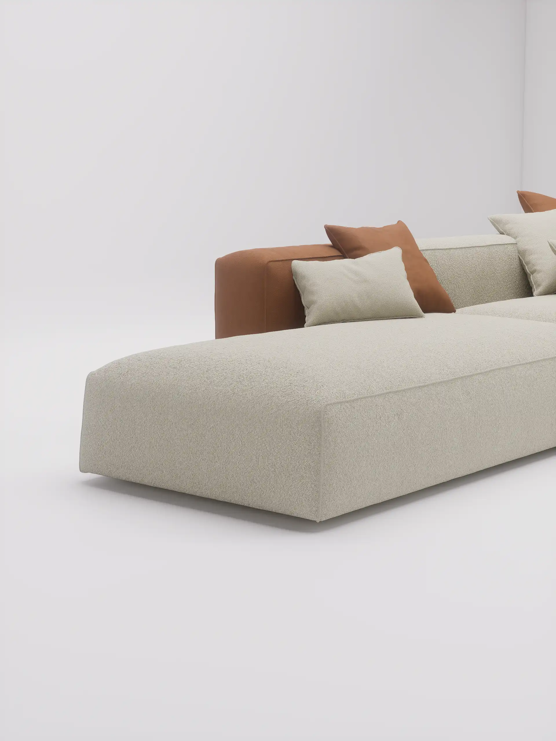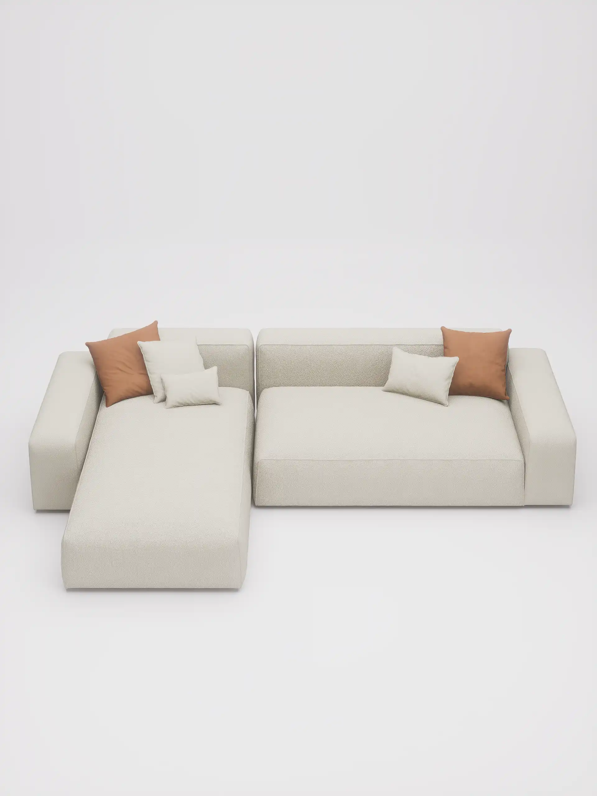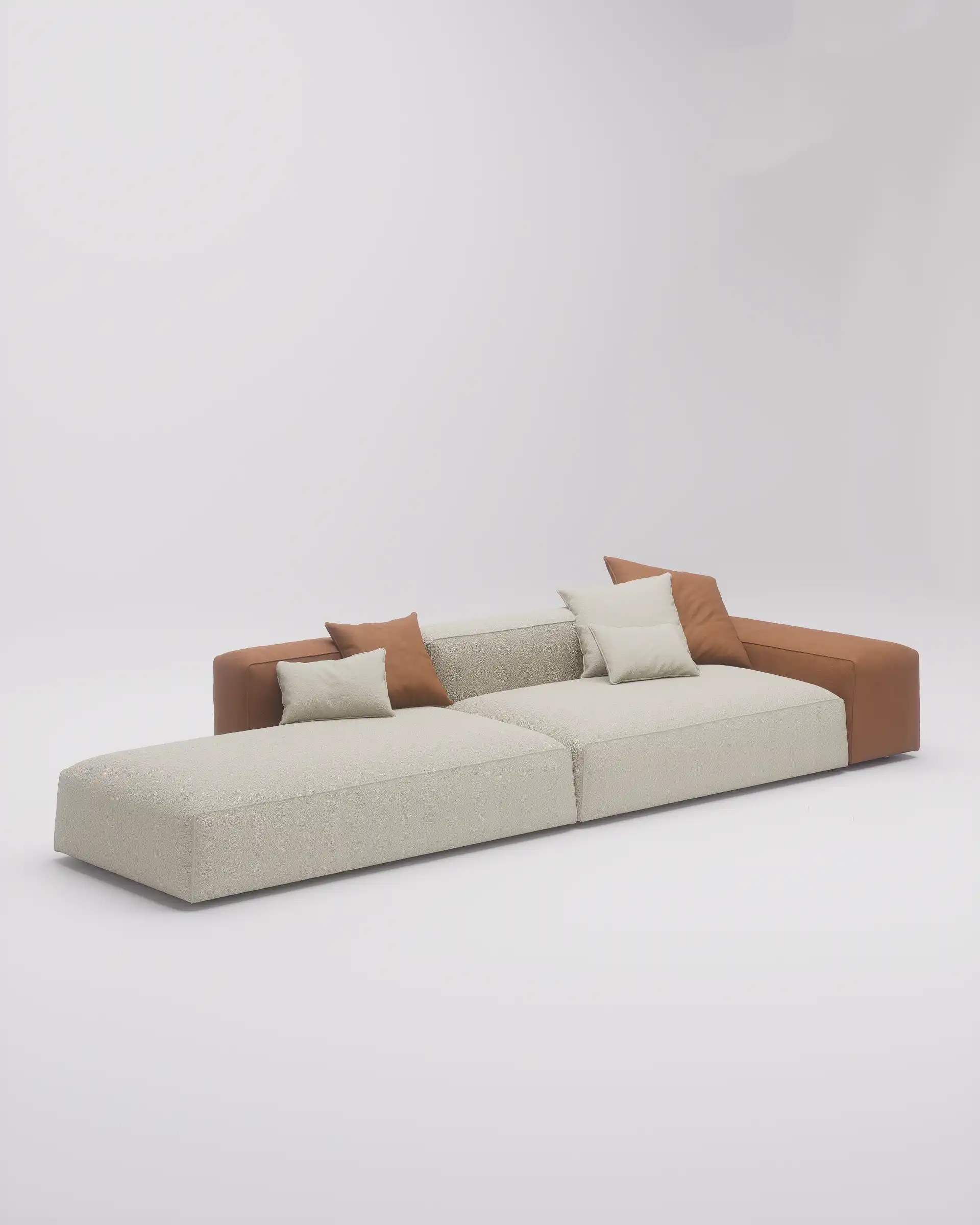 Niska modularna sofa Laro oduševljava jednostavnošću i prostranošću. Široka sedišta i kombinacija jastuka i dekica donose maksimalnu relaksaciju – idealna za veće dnevne sobe i opuštene večeri kod kuće.